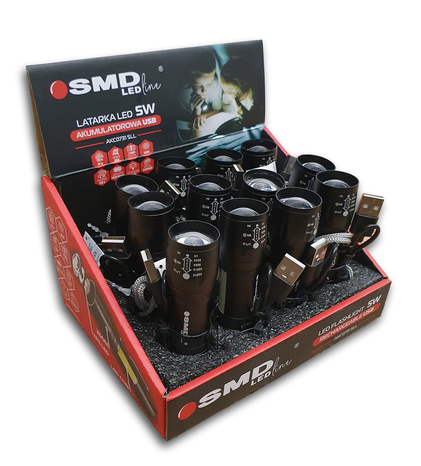 $ LATARKA LED ZOOM AKU 5W XPE+ COB+ ETUI