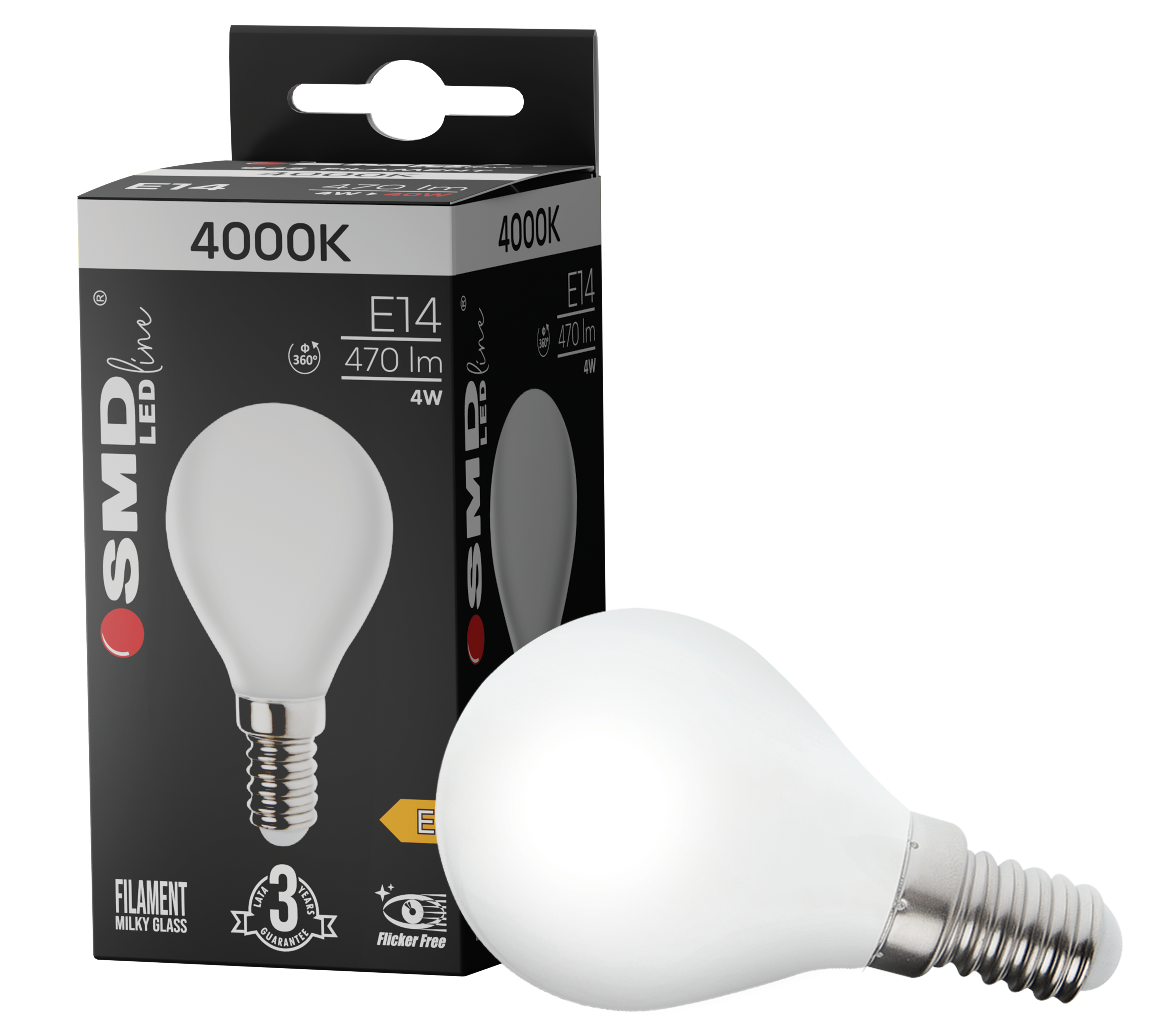 $ ŻARÓWKA E14 LED FILAME 4W WW ML G45 KULKA 4571