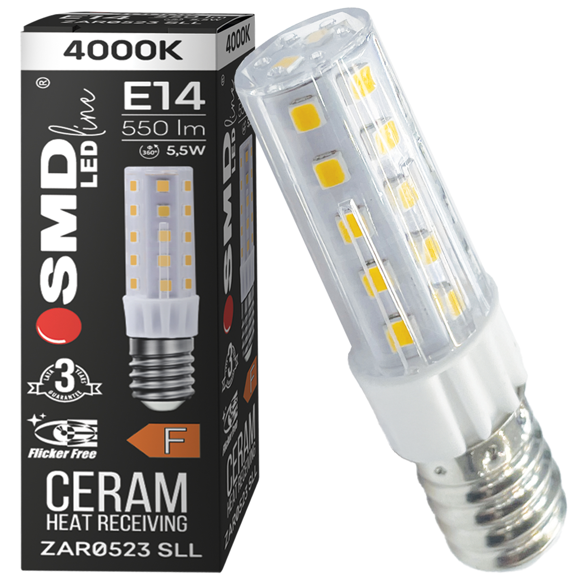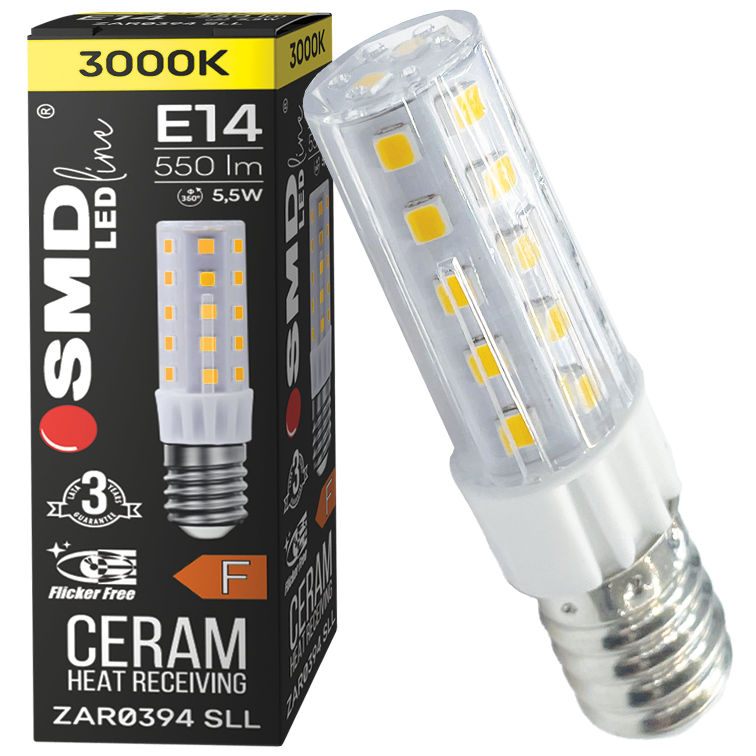 $ ŻARÓWKA E14 LED SMD WW 5,5W 550lm SLIM 0394