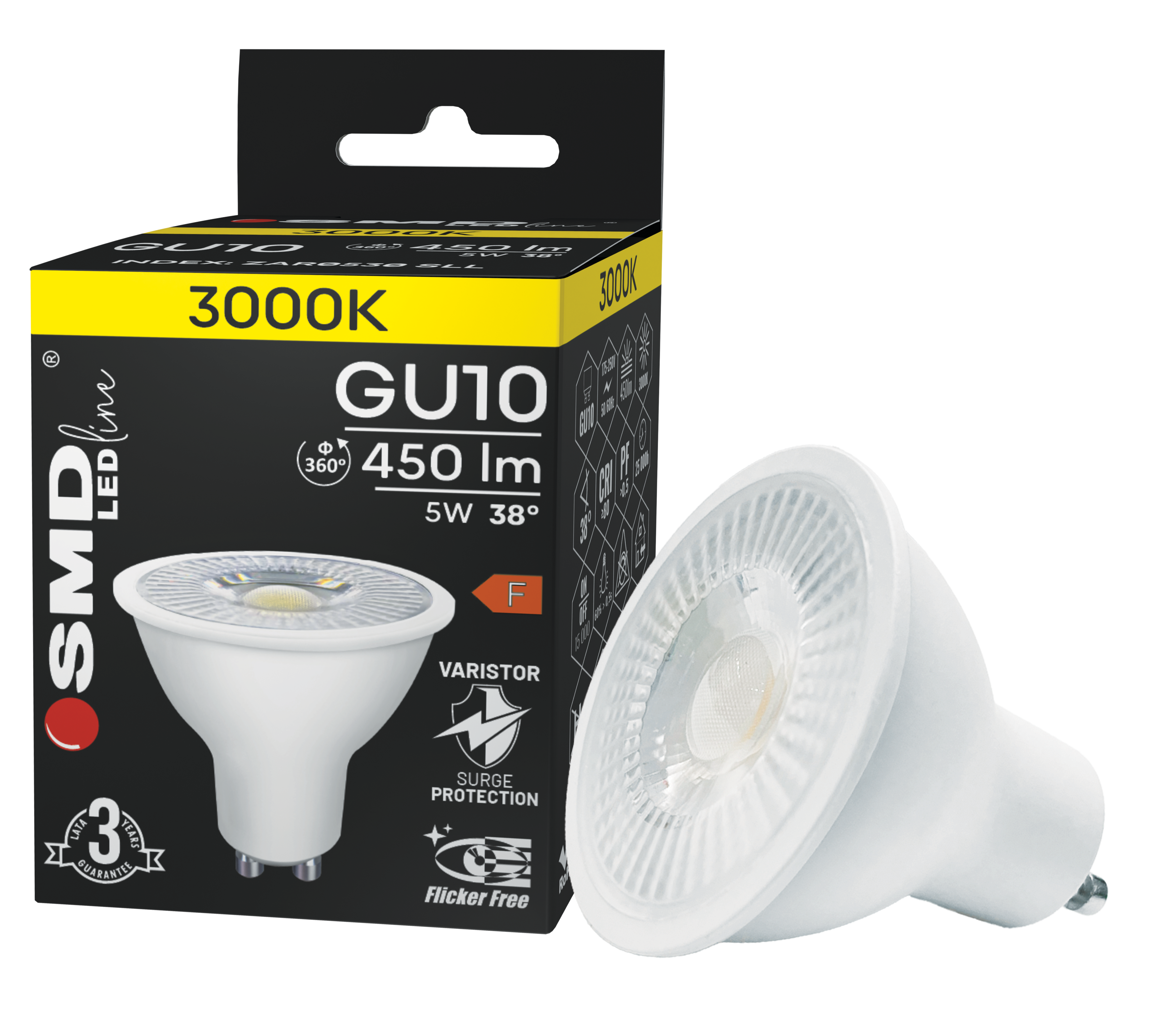 $ ŻARÓWKA GU10 LED SMD LEDline 5W WW 38st. 0530