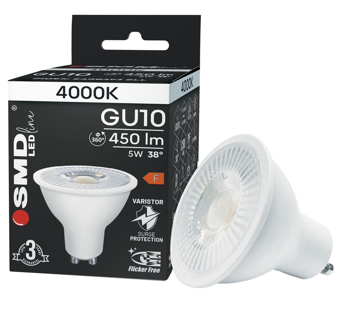 $ ŻARÓWKA GU10 LED SMD LEDline 5W NW 38st. 0493