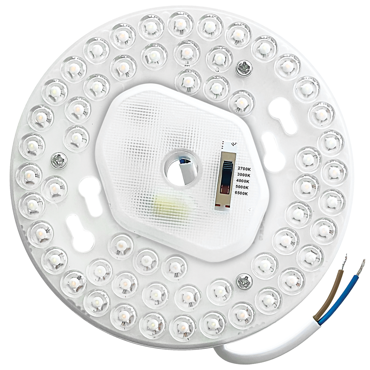 Moduł LED MODULO to energooszczędny wkład do plafonów, który umożliwia regulację barwy światła w pięciu krokach (2700K / 3000K / 4000K / 5500K / 6500K). Dzięki kompaktowej konstrukcji z aluminium i PC oraz możliwości montażu magnetycznego lub na wkrętach, moduł łatwo wpasowuje się w różne plafony, zapewniając wysoką jakość oświetlenia przy niskim zużyciu energii. Moduły charakteryzują się wysokim współczynnikiem CRI ≥80, co gwarantuje naturalne odwzorowanie kolorów.